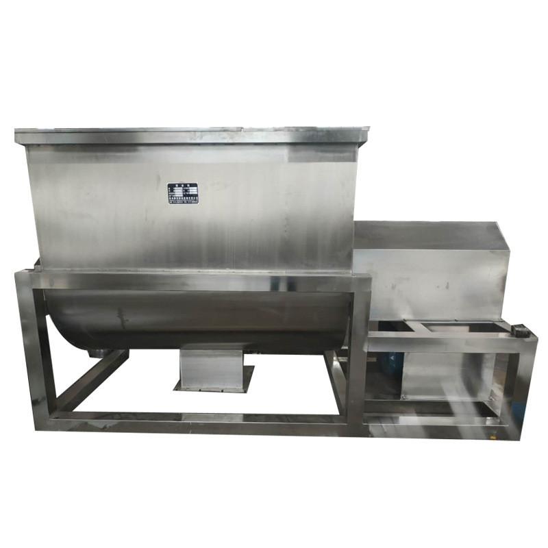 Ο αναμίκτης κορδελλών αποτελείται από την οριζόντια μορφή του U αναμιγνύοντας το σκάφος, το σύστημα κίνησης και τον ταραχοποιό κορδελλών. Το στοιχείο μίξης συνδυάζεται με τον εσωτερικό και εξωτερικό διπλό ελικοειδή ταραχοποιό κορδελλών. Η εξωτερική κορδέλλα κινεί τα υλικά στην κεντρική κατεύθυνση και η εσωτερική κορδέλλα κινεί τα υλικά στην κατεύθυνση αντίθεσης προς τη μορφή ακτινωτά και πλευρικά μετακίνηση. Τέλος, το υλικό θα απαλλαχθεί στη βαλβίδα κεντρικής απαλλαγής. Το μπλέντερ κορδελλών είναι μια αποδοτική και ευπροσάρμοστη μηχανή συνδυασμού για τη μίξη των ξηρών σκονών κόκκων ομοιογενώς. Τα διάφορα υλικά μπορούν να αναμιχθούν στον αναμίκτη κορδελλών μέσω ενός ευγενούς τρόπου, ειδικά στην υλική μίξη τροφίμων. Επιπλέον, ο μπαλτάς υψηλής ταχύτητας είναι επίσης διαθέσιμος για να σπάσει μερικά κομμάτια κατά τη διάρκεια της διαδικασίας συνδυασμού. Η κάλυψη κυλίνδρων μπορεί να γίνει στην αψίδα ή να ανοίξει πλήρως. Η αψίδα μπορεί να αντέξει την πίεση. Ο πλήρως ανοικτός τύπος είναι κατάλληλος να καθαρίσει το εσωτερικό του εξοπλισμού. Τα πλεονεκτήματα αυτής της μηχανής είναι ευρεία σειρά εφαρμογής, υψηλή ομοιομορφία μίξης, σύντομος χρόνος μίξης και μεγάλος συντελεστής φόρτωσης.